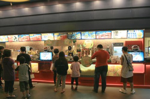 販售小姐:先生,現在買『超級戰艦』優惠套餐比較划算哦,有檸檬紅茶飲料+熱狗捲+爆米花哦,先生要不要參考看看呢?